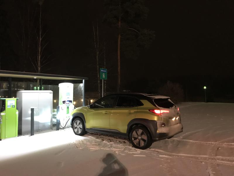Hyundai Kona Electricillä oli lataushaasteita tuiskussa ajon jälkeen
