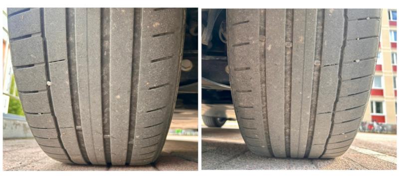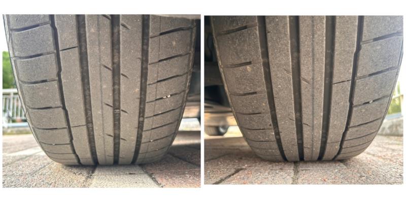 Nämä kumit ovat siis pyörineet auton alla tähän mennessä 56 461 kilometriä. En muista aiemmissakaan autoissani, että kesärenkaat olisivat liikenne-energiasta riippumatta kestäneet kahta, saati kolmea kesää kauemmin. Pois vaihdetuille takakumeille kerthyi käytännössä kahden kesän ajot. Sanoisin edelleen kulumista hyvin tyypilliseksi muutoin, mutta takavetoinen auto kuluttaa takarenkaita enemmän kuin eturenkaita. Näillä nyt takaa poistuvilla Hankookeilla on myös ajettu esimerkiksi Saksan Autobahnilla käyttäen auton huippunopeutta sekä useamman kerran kotimaisilla moottoriradoilla. Kulutusta on siis ollut varmasti montaa muuta autoa enemmän.