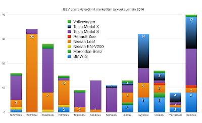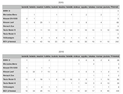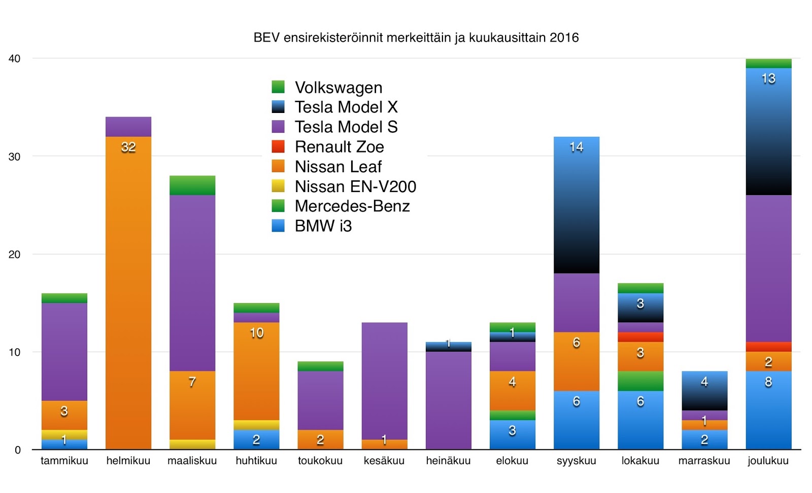 Joulukuussa 2016 uusien täyssähköisten henkilöautojen ensirekisteröintien määrä jopa nelinkertaistui!