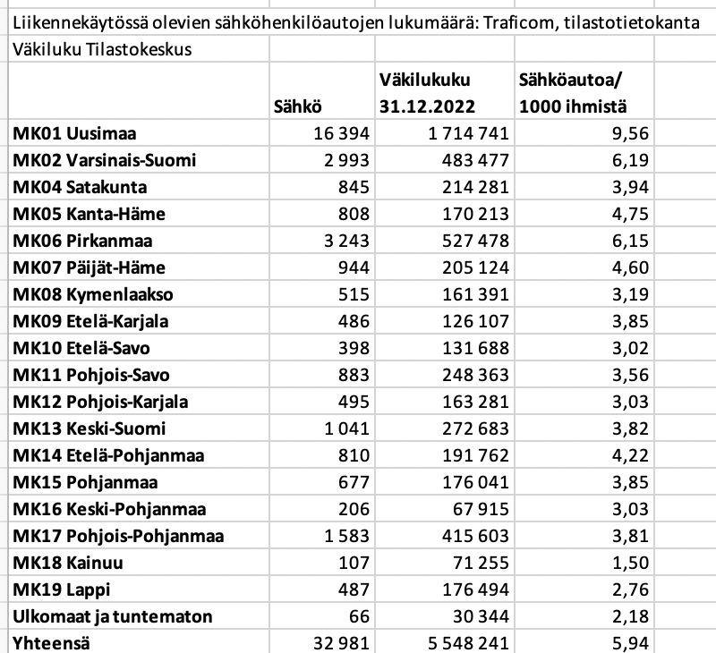 En ole pitkään aikaan tehnyt katsaustani sähköautojen kantaan, mutta nyt kun Q2/2022 tieliikennekäytössä olevien autojen tilasto on julkaistu Traficom Tilastotietokantaan, niin ajattelin tarkistaa missä nyt mennään ja kirjoitan samalla tähän blogikirjoitukseen selvityksieni tulokset.