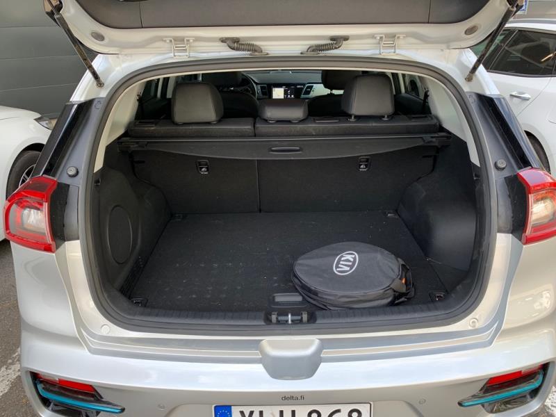 Tavaratilaa e-Niro tarjoaa Kona-sisartaan merkittävästi enemmän, eli 451 litraa (Kona Electric 332l, Leaf 2018 435l). e-Niron tavaratila on selkeän mallinen ja tarjoaa pohjalevyn alla peräti kaksi melkoisen suurta lisälokeroa vielä. Frunkkia, eli etutavaratilaa e-Nirossa ei ole, mutta sinne kyllä sopisi ja olen nähnytkin yhden tee-se-itse -frunkin sinne rakennetun.