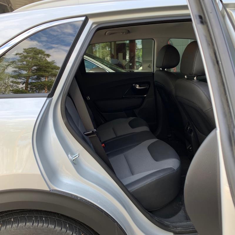 Kia e-Niroon sai sähkösäätöisellä kuljettajan istuimella erittäin hyvän ajoasennon. Istuinosan lyhyys ainoastaan haittaa jo kaltaisellani 176 cm lyhyellä miehellä kuten yleensäkin autojen vakiopenkeillä tuppaa käymään. Ratin säädöt ovat myös ylös-alas, sekä eteen-taakse reilusti yli omien tarpeideni. Pääntilaakin jää ruhtinaallisesti jäljelle vaikka säädin istuimen melko ylös, jolloin takamatkustajan varpaat sopivat hyvin etuistuimen alle.