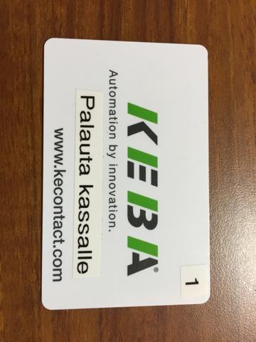 Paikalla oleva Keba-laturi vaatii RFID-tunnistuksen, johon saa kassalta 2 euron latausmaksun maksettuaan kortin.
