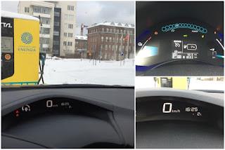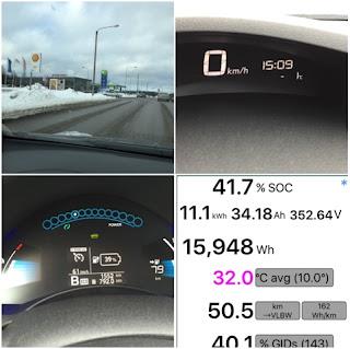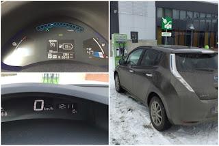 Tämä reittivalinta sen takia, että en voi vielä kokematta luottaa 30 kWh-akkuisenkaan Nissan Leafin selviytyvän talvikelissä Lahti - Jyväskylä -välistä.
