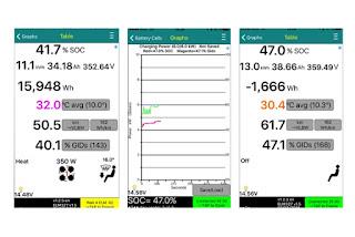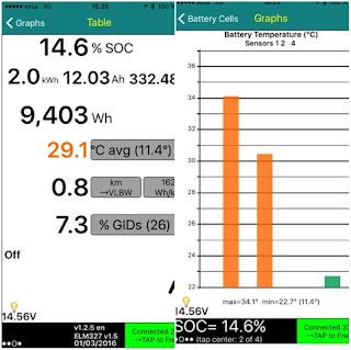 Nyt akutkin alkavat hieman saada jo lämpöä. Kun lataustaso on 95%, on akkujen maksimi lämpö 41 C, ja alin 33,7 C.