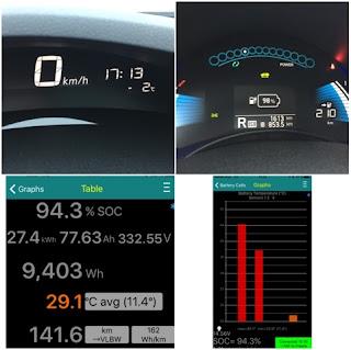Kello 9:30 päätin latauksen 58% kohdalla. LeafSpy kertoo silloin olevan 12,7 kWh.