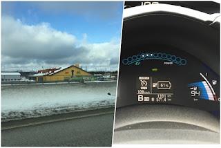 Tiiriössä auton matkamittari näyttää 1384 km, eli matkaa talvisissa moottoritieolosuhteissa kertyi 111 km ilman välilatauksia.