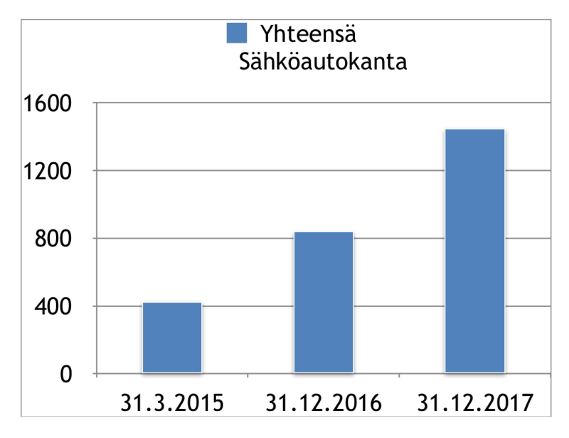 Liikennekäytössä olevien täyssähköautojen (BEV) kanta kasvoi 31.12.2016 tilanteesta 31.12.2017 mennessä 72%. Vuoden 2017 lopussa tieliikennekäytössä oli yhteensä 1449 täyssähköautoa ja kasvua oli siis 607 kappaletta.