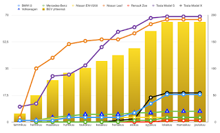 Uudet mallit, i3 ja Model X ovat ottaneet vahvaa asemaa kumulatiivisissa rekisteröintimäärissä nopeasti. BMW i3:sia on rekisteröity 18 kpl ja Model X vielä yhden enemmän ja vain kolmen kuukauden aikana.