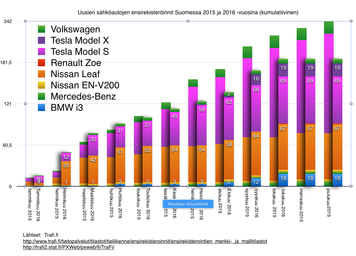 Lokakuussa 2016 oli hiljaista sähköautojen ensirekisteröinneissä, silti päästiin yli viime vuoden kokonaismäärässä!
