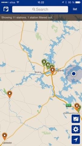 Sovelluksen reittihaku- ja autoon välitystoiminnot toimivat erinomaisesti.