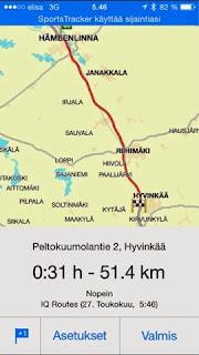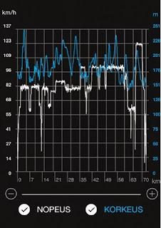 Keskinopeudeksi muodostui 109km/h, ja ajoin koko matkan ylimpiä sallittuja nopeuksia navin mukaan. Eli lähes koko matkan 120 km/h.