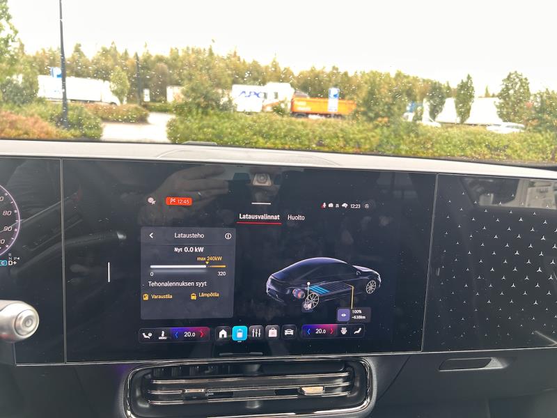 CLA:n tapauksessa latastehoisa kirjoittaessa on syytä mainita, että tällä hetkellä myynnissä olevat ja toimitettavat autot tukevat vain 800V:n latausasemajännitettä, eli ne eivät pysty lataamaan 400V jänniteen DC-latureista lainkaan. Pääsääntöisesti uudet latausesamat ovat 800V jännitteellä, mutta kyllä tuo rajaa jonkin verran Suomessakin olevia latausasemia pois tämän Mersun kohteista. Myyjä vahvisti, että CLA:han on tulossa 400V / 800V jännitteen latureille tuki myöhemmin myytäviin ja toimitettaviin autoihin, mutta tarkkaa ajankohtaa ei ollut tiedossa, eikä sitä, että tuleeko se lisävarusteeksi vai vakiovarusteeksi Suomessa.
