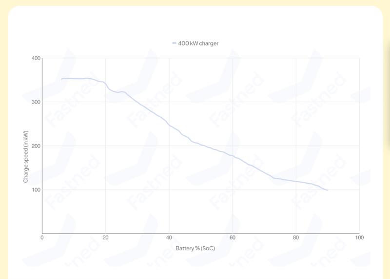 Auto lämmitti akuston noin +23 °C lämpöön, kunnes se hieman ennen laturille saapumista päätti että 34 % varaustasolla laturille saapuessa ei akkua tarvitse enempää lämmittää. Auto näytti silloin maksimilataustehon toteutuman arvioksi 240 kW:n lukemaa, vaikka maksimi latausteho olisi tälle autolle peräti 320 kW. Selkeästi siis akuston varaustaso oli auton ohjelmoinnissa lataustehoa rajoittava tekijä, ei lämpötila. Myös Fastned-sivustolta löytyvä latauskäyrä kertoo suunnilleen samaa, ehkä sen mukaan olisi voinut latausteho olla hieman perempikin.