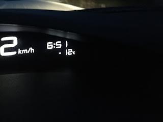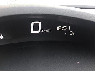 Auto oli jo aikaisemmin saavuttanut Charge-Ams Spark -kaapelilla 100% lataustason ja ajastettu auton lämmitys käynnistyi jo kello 6:45 (olin ajastanut 8:00 lähtöajaksi).