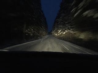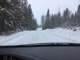 Alkumatka (noin 50km) on hyvin pieniä maaseututeitä. Ne ovat kyllä asfaltoituja, mutta näin talvella vaihtelevan laatuisella lumipolanteella kuorrutettuja. Tämä oli koko matkan kriittisin osuus akun riittävyyden suhteen, joten säästelin energiaa pikkutieosuuksilla ajamalla noin 60 km/h keskinopeuksia ja pitäen lämmityslaitteen puhaltimen koko ajan asennolla 1, ja tavoitelämpönä +16C.