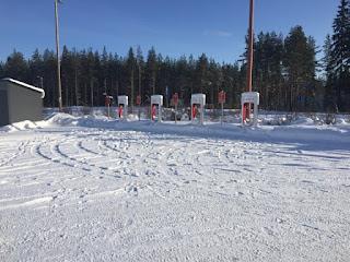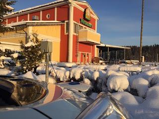 Siispä Viitasaaren ABC:ltä ennalta sovittua schuko-latausta henkilökunnan autojen lämpötolpasta saamaan aamukahvin ja koirien ulkoilutuksen merkeissä.