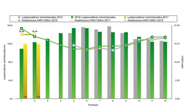 Helmikuun laskennallinen toimintamatka oli 119,4 km
