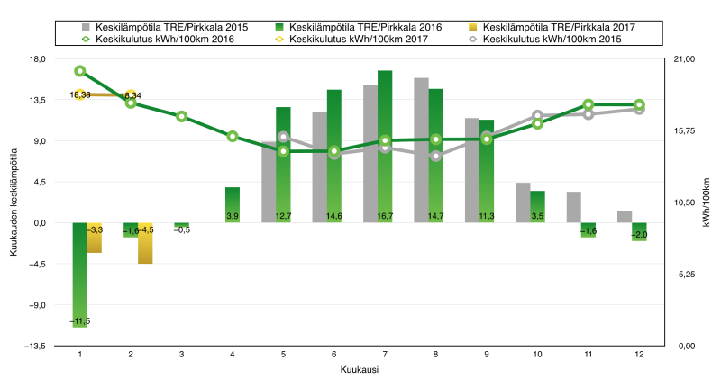 Nissan Leaf -sähköauton kulutus helmikuussa 2017