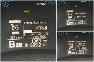 Mittasin moottoritiellä Leafin energian kulutuksen kahdella hieman yli 25 km matkalla. Täysin tarkkoja tulokset eivät ole useiden avoimiksi jääneiden muuttujien vuoksi.