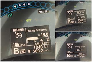 Nopeuden ollessa 100 km/h nousi kulutus lukemaan 19 kWh/100 km.