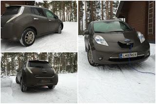 Nissan Leaf ohiajovideo maalaistiellä talvella