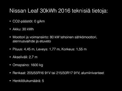 Aikaisemman 24 kWh Leaf kokemuksen sekä tämän 30 kWh uuden mallin koeajon perusteella uskallan kannustaa yhä useampia autoilijoita koeajamaan Leaf omissa käyttötilanteissaan.