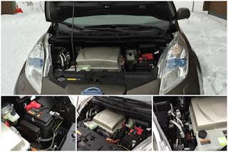 Leafin konehuoneessa näyttää yllättävän paljon samalta kuin polttomoottoriauton konetilassa.