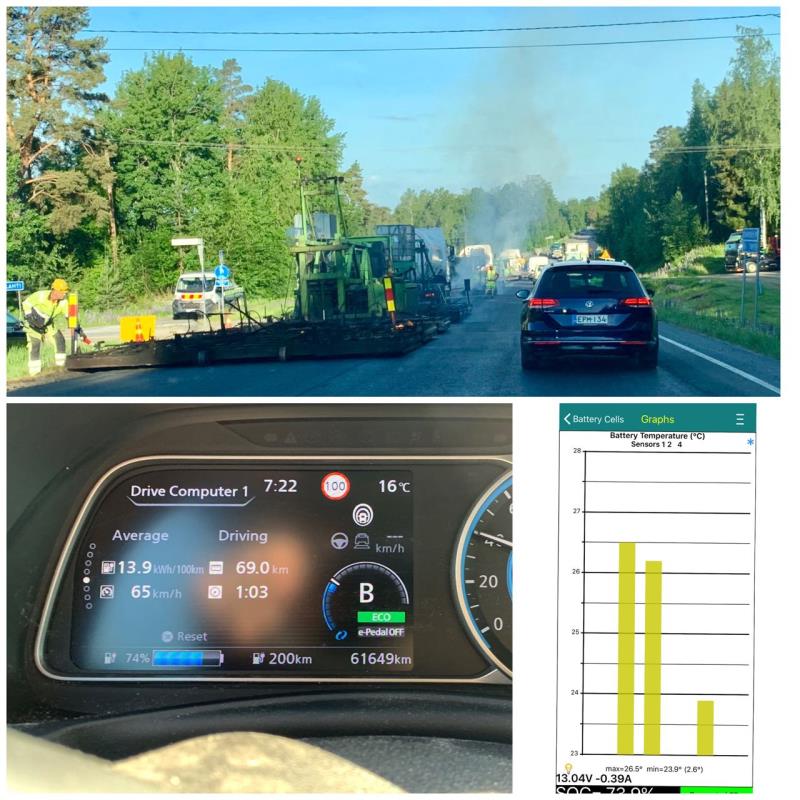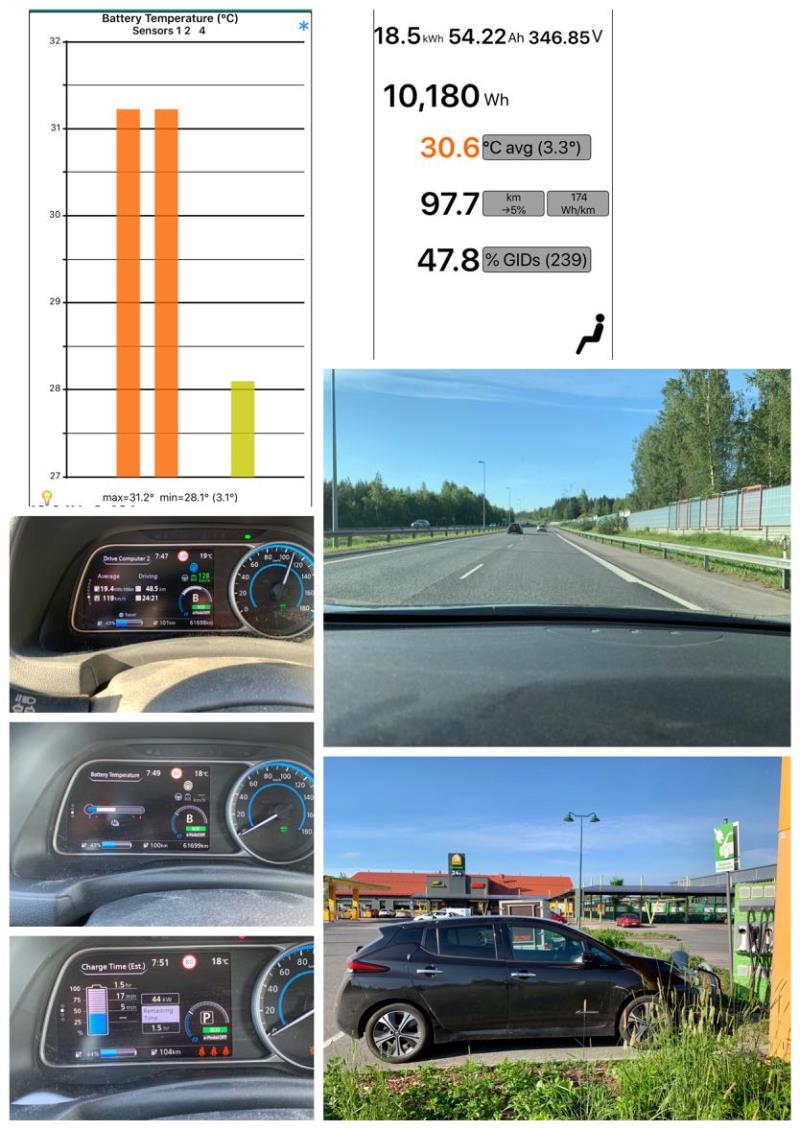 Hyvinkään ABC:n pikalaturilta matkaa jatkaessani huomasin, että moottorin tehoa on alennettu kuumien akkujen takia. Auto antoi noin 90 kW:n moottoritehon. Tuolla ei kuitenkaan ollut havaittavia haittavaikutuksia. Ainoastaan kaikkein terävin kiihtyvyys leikkautui pois.
