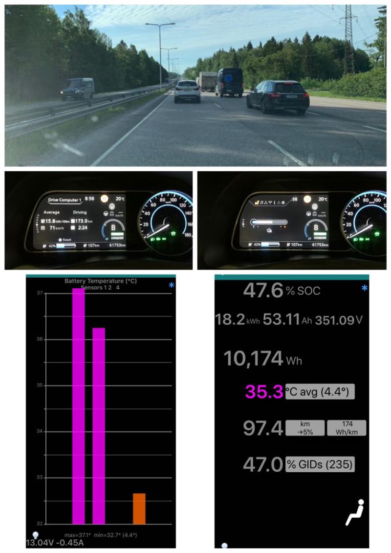 Yhteenveto Leaf 40 kWh moottoritieajon kokemuksesta BMS-päivityksen jälkeen