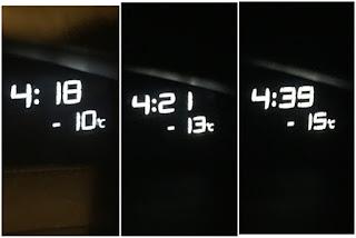 -11 astetta lähtöpaikan lämpötila, ajon aikana lämpötila pääosin -13..-14 astetta. Pääosin melko tyyntä.