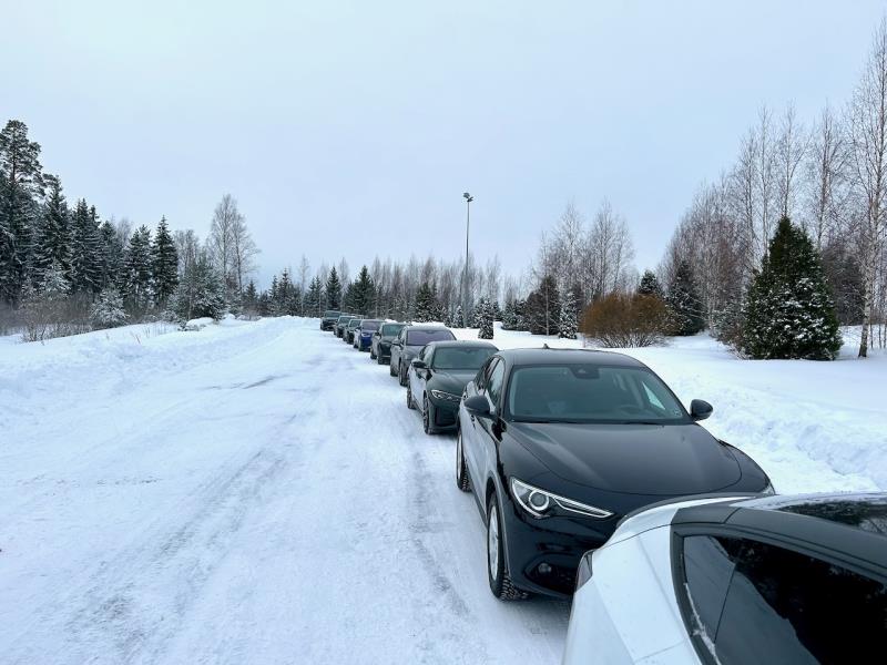 Ajoharjoitteiden jälkeen palasimme kokoustiloihin ja kävimme vielä yhdessä loppukeskustelun. Yleisesti henki tuntui muillakin olevan, että kyllä olisi erittäin suotavaa, että ihmiset kävisivät suorittamassa liukkaan kelin ajoharjoittelua myös silloin, kun saavat uuden auton luovutuksesta käyttöönsä. Jokainen auto käyttäytyy kuitenkin liukkaalla ääritilanteissa eri tavalla. ID.4:mme oli tehtävissä jopa tylsän eleetön suorittaja, vaikka luistot pitkiä olivatkin painavalla autolla jäisellä radalla ja kitkarenkailla. Muutamat autot tarjosivat silminnähden helposti yliohjautuvuutta hirvenväistössä, eli perä lähti välillä voimakkaisiinkin luistohin. Toiset taasen olivat enemmän puskevia. Yhden kehitystoiveen esitin järjestäjille. Nimäittäin olisi hyvä, jos he pystyisivät rakentamaan niin pitkän loivan kaarteen isoilla pehmeillä ulosajoaluilla, että siinä pääsisi harjoittelemaan sähköauton moottorijarrutuksen, eli regeneroinnin vaikutusta ajolinjoihin. Siinä voisi autoilijat testata omia autojaan eri regen asennoilla ajaen ensin luiston ja pidon äärirajalla ja sitten nostamalla jalan nopeasti pois voimapolkimelta. Silloin voisi opetella turvallisesti oman auton käyttäytymistä tuossakin tilanteessa sekä tarkistaa omaa ajatustaan siitä, millä regeneroinnin tasolla haluaa omalla autollaan talvella ajaa.