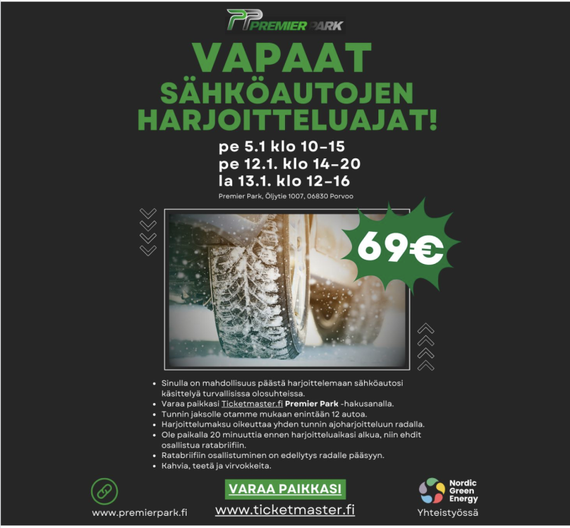 13.1.2024 oli jälleen aika lunastaa itse itselleni tuo liukkaan kelin säännöllisen harjoittelun merkitys ja osallistuin Premier Parkin järjestämään tilaisuuteen sähköautoille. Kuvaan tähän blogikirjoitukseen pääpiirteittäin Premier Parkkia ja ajoharjoittelutapahtumaa, johon osallistuin. Tämä ei ole Premier Parkin pyytämä saati maksama mainos, vaan kirjoitan vain oman kokemukseni tilaisuudesta. Kannustan kuitenkin autoilijoita osallistumaan omalla autollaan liukkaan kelin arjoharjoittelutapahtumaan jossain ohjatussa tilaisuudessa.