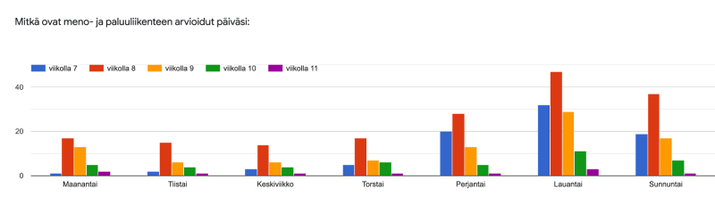 Matkojen ajoittuminen viikoille ja viikonpäiville: