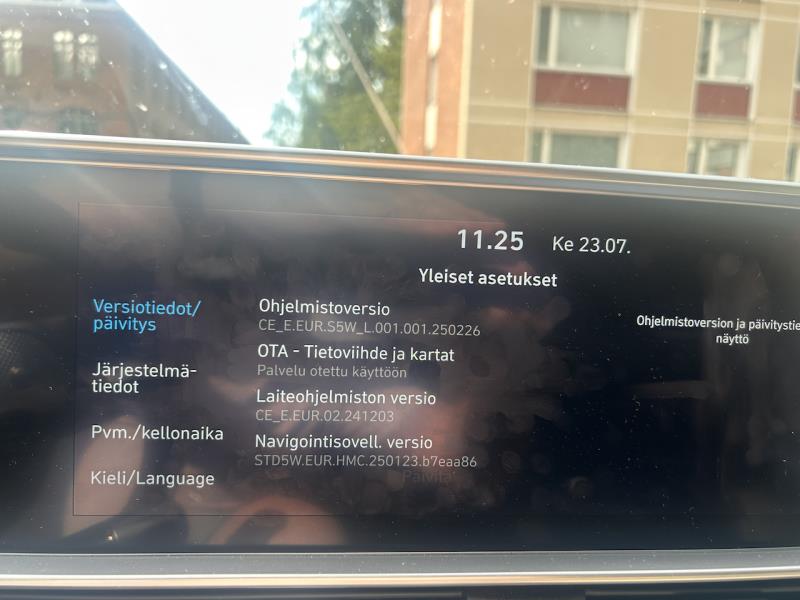 Kotiin paluun jälkeen heti seuraavana päivänä, eli 22.7. päätin kokeilla OTA-päivitystä, koska kesälomaa oli molemmilla vielä jäljellä, eikä pakollisia menoja ollut tiedossa. Päivitys alkoi aivan normaalisti ja näytti menneen normaalisti läpi. Päivityksen valmistuttua ajotietokone sanoi ohjelmistoversion olevan CE_E.EUR.S5W_L.001.001.250226. No eihän tuo minulle mitään kerro, enkä edes tiedä onko tuo nyt oikea paikka mistä ohjelmiston uusin versio voidaan todeta, saati että onko se nyt sitten asentunut, kuten päivitys kertoi.