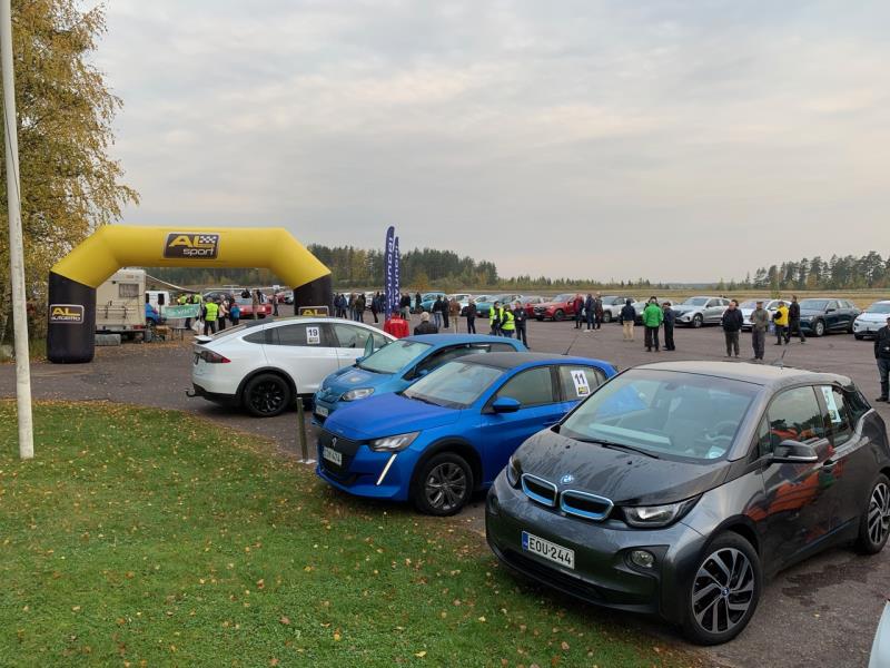 - Paluu maaliin, eli samalle parkkialueelle ja autot laitetaan lataukseen. Kun akut on 100% täynnä raportoidaan kaikkien autojen laturista ottama energiamäärä ja sillä lasketaan kulutus kWh/100km.