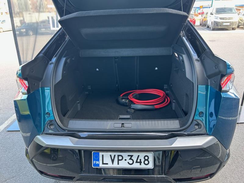 Tavaratila sen sijaan on ilmoitettuja litroja kookkaamman oloinen ja selkeän muotoinen. Välipohjan alla on lisää tilaa ja sen sai ainakin koeajoautossa asetettua kahteen korkeuteen. Etutavaratilaa ei e-3008:ssa ole tarjolla.