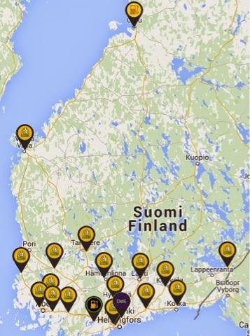 Onneksi useat S-ryhmän alueosuuskaupat ovat lähteneet ennakkoluulottomasti ABC-asemillaan kehittämään sähköautojen pikalatausverkostoa. Kuvassa ABC-asemat.fi -sivulta kuvakaappaus pikalatauspisteistä ABC-asemilla 7.42015. Silti painavana toiveena on verkoston nopea laajeneminen Pori-Tampere-Lahti-Lappeenranta -linjaa pohjoisemmaksikin.