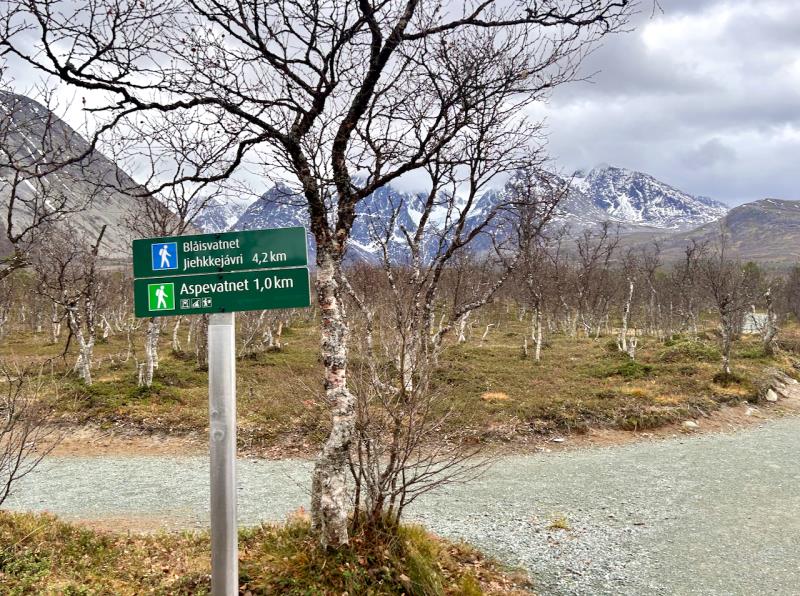 Parkkipaikalta alkaa 4,2 km hyvin merkitty opastettu reitti Blåisvatnetille. Meille kertyi kävelyä menomatkalla noin 5 kilometriä ja reitillä on noin 187 m nousua. Matka ei ole pitkä, eikä nousu kohtuuttoman jyrkkää, mutta tälle reitille on syytä varautua kunnollisilla vaelluskengillä, koska lähes koko matka kävellään kivikossa, missä pyörivien kivien koko vaihtelee enimmäkseen nyrkin kokoisesta pään kokoiseen. Tämä myös teki kävelemisestä yllättävän raskasta. Noin puoli kilometriä ennen kohdetta vastaan tuleekin sitten melkoinen louhikko ylitettäväksi.