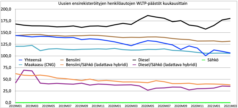 Uusina suomessa ensirekisteröityjen henkilöautojen WLTP CO2 -päästöt laskevat kokonaisuutena hitaasti. Diesel- ja bensiinikäyttöiset autot eivät ole asiaan lainkaan ratkaisu kun tarkastelee kehitystä. Olennaista on sähköautojen määrän kasvaminen. Tieliikennekäyttöön rekisteröityjen autojen WLTP-päästöjen kokonaisuus on valitettavasti vielä tätä uusien autojen tilastoa synkempi, koska käytettyinä tuodaan niin paljon Suomeen Euroopasta vanhoja paljon päästäviä dieseleitä.
