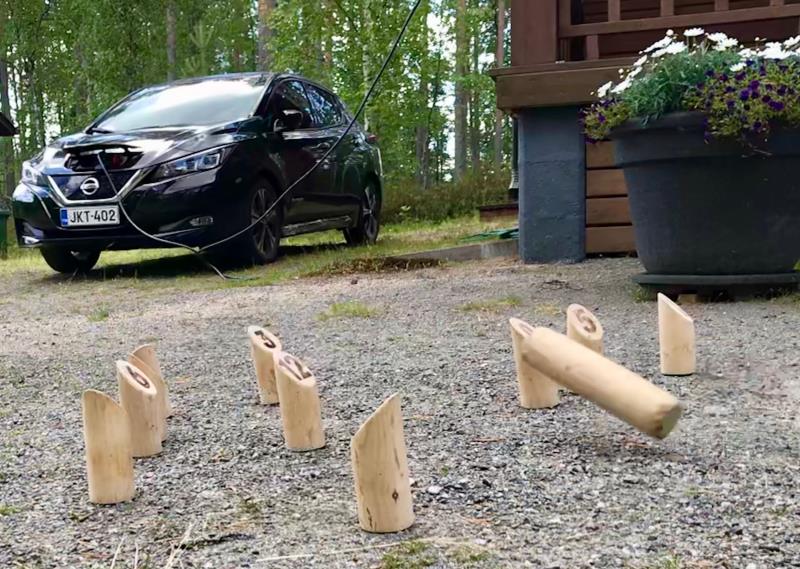 Akkujen kuumentumisesta ei ollut haittaa, koska laitoin auton saamaan 10A latausvirtaa punaisesta työmaapistokkeesta ja aloimme viettämään mökkiaikaa helteistä ja auringosta nauttien.