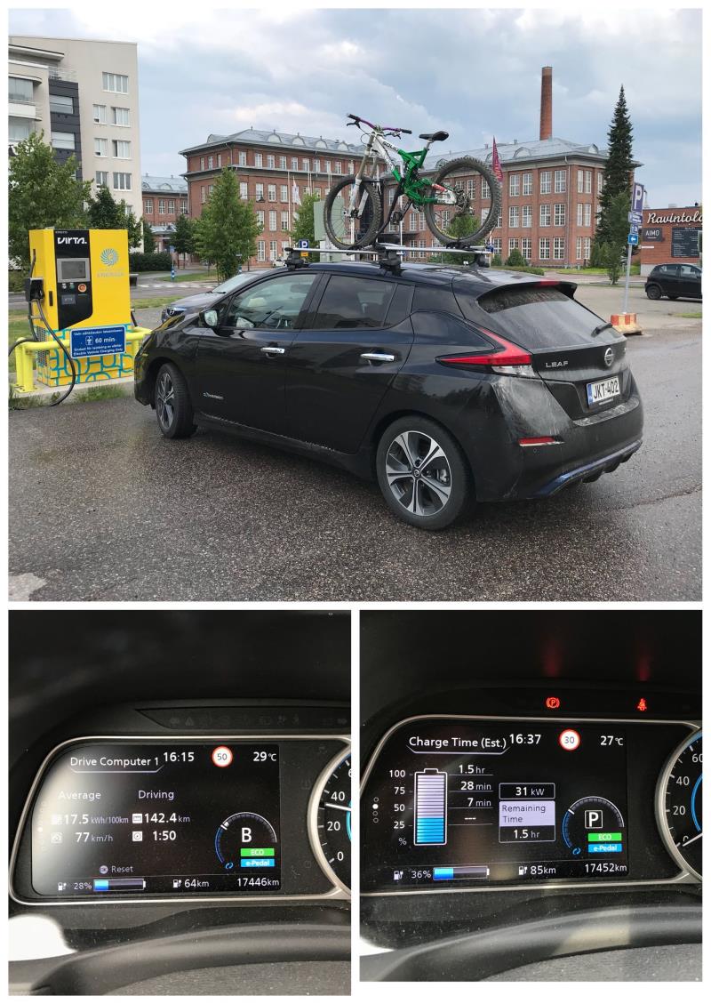 Tällä tavalla palasteltuna Leafillakin reilun 1500 km matka ei ole mikään ongelma. Akun kuumeneminen tuli kyllä vastaan nytkin pariin otteeseen, mutta ei mitenkään kohtuuttomasti matkan edistymistä haitaten. Huomioitavaa on, että matkanteon aikaan Suomessa oli tosiaan jopa lappia myöten ennätyshelteet. Yhden muutoksen tekisin, jos nyt lähtisin poikani kanssa samalle retkelle. Korvaisin Muonion Harri Nivan yöpymisen kahdella yöllä ja yhdellä pitkällä päivällä Levillä. Majoittuisin Hullu Poroon ja laskisimme pojan kanssa pitkän päivän DH-pyörillä Levin upeita DH-reittejä.