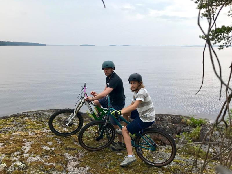 Jäimme nauttimaan mökkeilystä pariksi päiväksi kaunissa ja kuumassa kesäsäässä. Muun mökkeilyn lomassa toteutimme Kolimajärven rantakallioilla hiukan myös pyörätreeniä pojan kanssa.