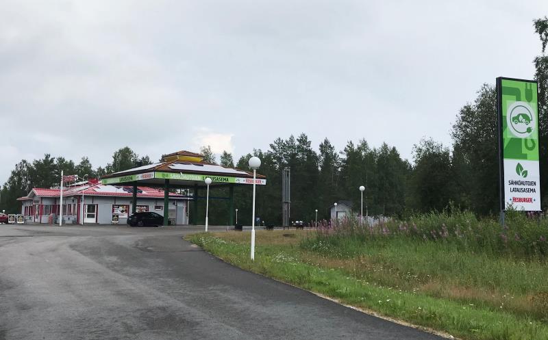 Ensimmäinen pikalataus mökiltä lähdön jälkeen tehtiin Siikalatvan Hesburgerilla. Mitään tarvetta auton lataamiselle ei vielä olisi ollut, koska akussa oli vielä 15,6 kWh energiaa, mutta kuski tarvitsi ensimmäisen tauon jo tässä vaiheessa. Auto otti vielä aivan täyttä noin 43 kW:n tehoista pikalatausta. Latauksen aikana sain tilaisuuden ihastella Siikalatvan Hesburgerin katettua latauspistettä. Tässä on jo jotain havinaa tulevaisuuden liikenne-asemasta. Pikalatausta katoksessa ja palvelut ohessa. Ei bensiiniä tai dieseliä tarjolla lainkaan.