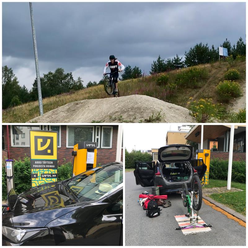 Siikalatvasta jatkoimme matkaamme suoraan Ouluun. Päätin ajaa Oulussa Kasarmintien pikalaturille, koska siitä oli pieni matka Oululaiselle dirttiradalle, johon halusimme mennä hetkeksi pyöräilemään pojan kanssa. Kasarmintien Virtapisteen pikalaturi sattui olemaan epäkunnossa, mutta sillä ei nyt ollut suurta merkitystä. Jätimme auton saamaan Type2-latausta pyöräiymme ajaksi. Oikeastaan tuota pikalaturin toimimattomuutta suurempi pettymys oli dirttiradan heikkous.