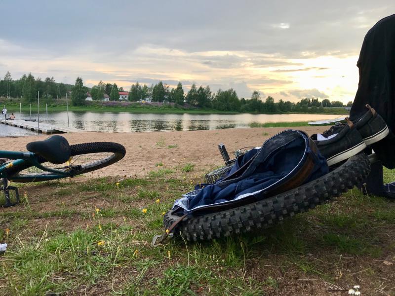 Pakkasimme poikani kanssa autoon telttailuvarusteiden lisäksi huonemajoitusta varten täydet petivaatetukset ja jopa parin viikon vaatetarpeita. Näiden lisäksi pakkasimme kyytiin myös kaksi polkupyörää, yhden DH-pyörän ja yhden Dirtin. Jyväskylästä Viitasaarelle DH-pyörä sai matkata auton katolla.