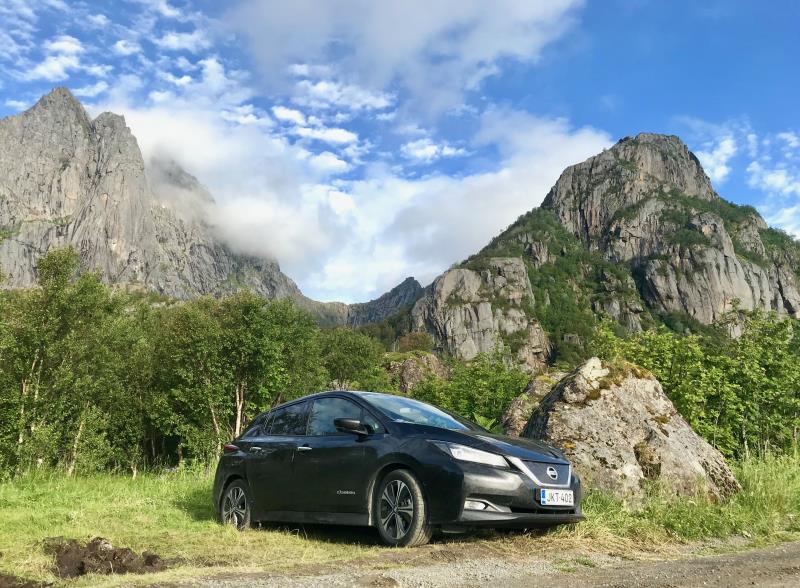 Sähköauto Nissan Leafilla Norjan Lofooteille menomatkan matkatarina