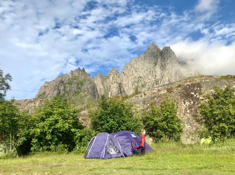 Täällä Nordkjosbotnissa matkantekomme hidastui jonkin verran jälleen #rapidgaten takia, nimittäin akkujen lämmöt olivat sen verran korkeat, että saimme vain 23 kW:n tehoista latusta. Eipä tuokaan meitä haitannut ja hakeuduimme paikalliseen katugrilliin ostamaani päivällistä. Ioniq katosi tässä vaiheessa kuitenkin jo äänettomästi horisonttiin, kohti ensimmäistä majapaikkaamme Norjassa, eli Kalle in Lofootten ilmaista leirintäaluetta. Meidän auton mittariin oli kertynyt tähän mennessä 18583 km lukema, eli Kilpisjärveltä olimme tulleet tämän matkapäivän aikana vasta 374 kilomtriä ja kotoa 1280 kilometriä. Pian matka kuitenkin jatkui melko täyteen ladatulla akulla kohti Lofootteja.