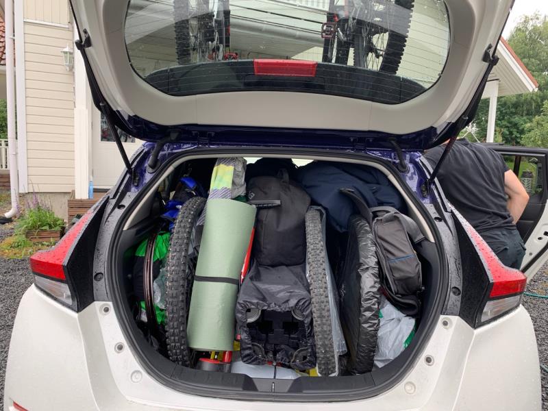 Auto lastattiin todella täyteen maaseutukotimme pihassa. Katolla oli kaksi polkupyörää ja yksi oli purettuna peräkonttiin. Takapenkin selkänojan suurempi puoli oli kaadettuna, jolloin kyytiin saatiin sopimaan pyörän lisäksi mm neljä kiekkoa, varikkoteltta, ajovarusteet kolmelle henkilölle, kolmen henkilön matkatavarat neljäksi päiväksi sekä huolto- ja varaosapakit.