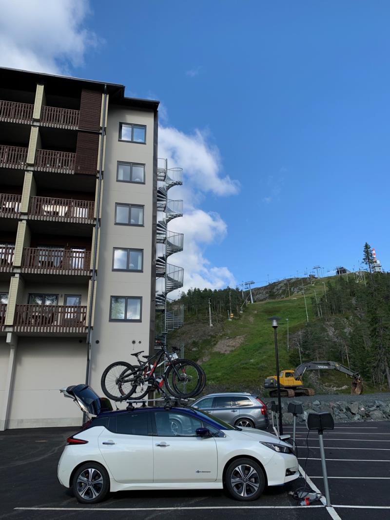 Olimme Rukalla neljä päivää ja siellä viipymisen aikana meille tuli yllättävän vähän ajoja, koska majoituksemme oli DH Suomi osa-kilpailun kisareitin ja hissin puolivälissä. Auto sai olla suurimman osan ajasta akku täynnä yhtä Kuusamoon tehtyä polkupyörän rengashuoltokäyntiä lukuunottamatta.